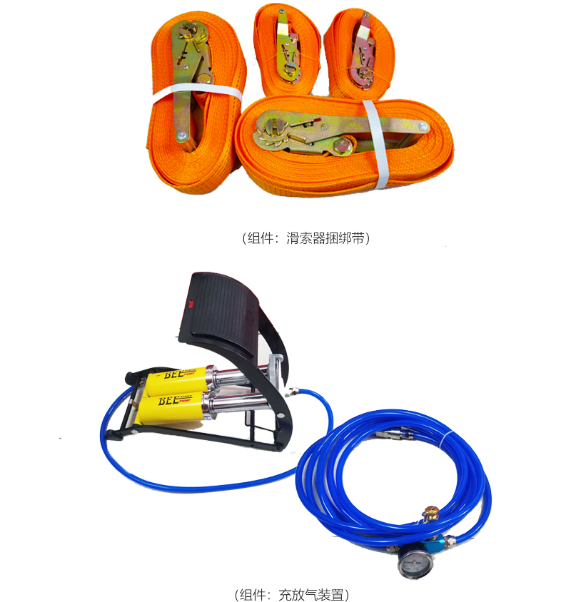 堵漏袋、腳踏氣泵組件、充氣軟管、排氣接頭、捆扎帶組件