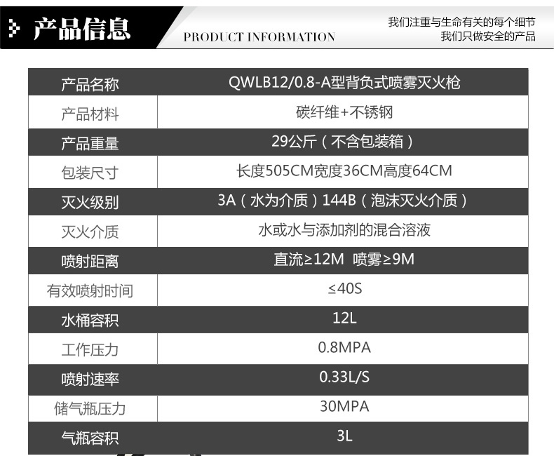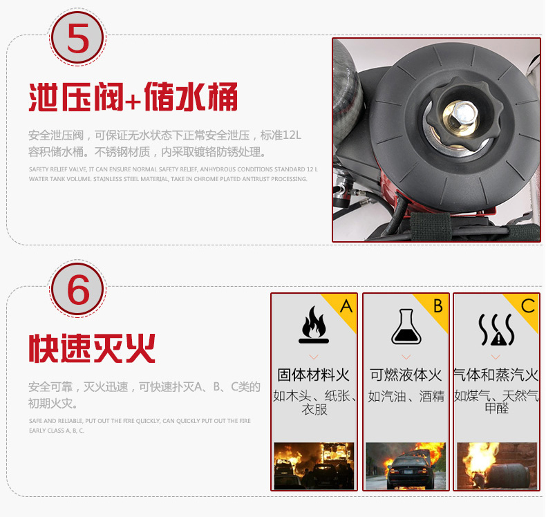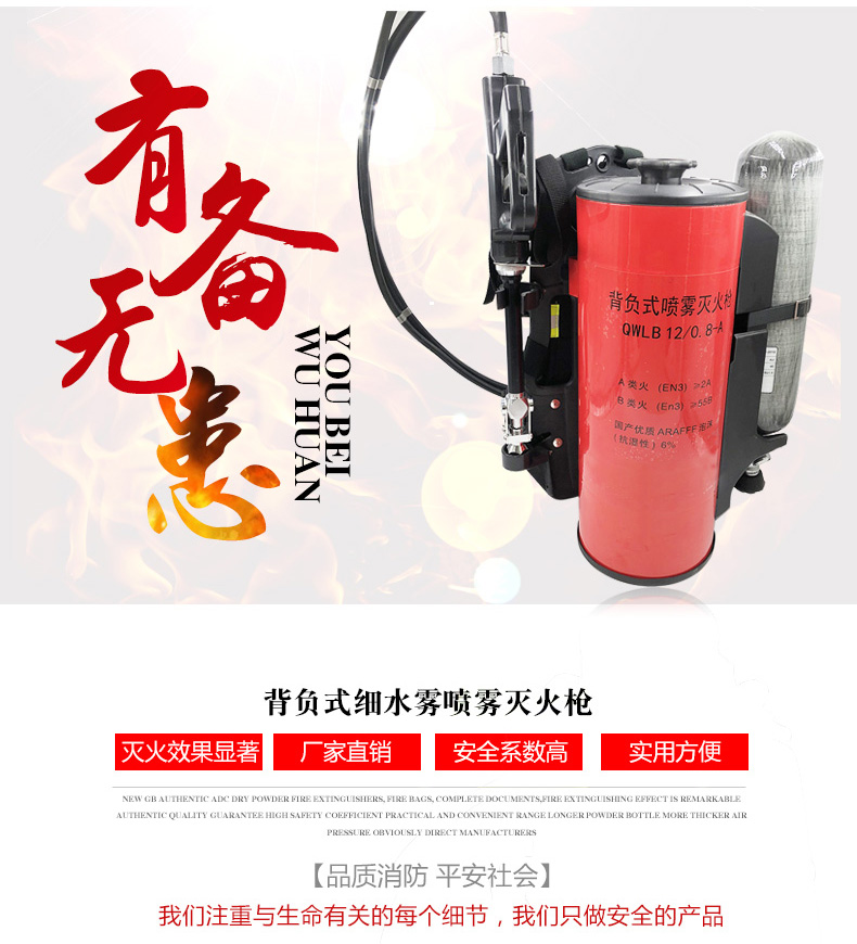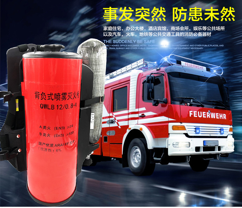 適用于狹小窄巷、集裝箱港口碼頭、部隊、機(jī)場、高速公路、交通車輛密集的城市街道具有方便快捷的特點(diǎn),對汽車火、房間火、油火等均有奇效。滅火級別:3A、144B。